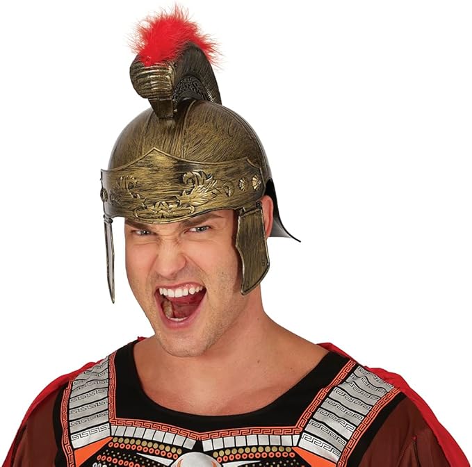 Guirca Casco romano para adulto en color oro y cresta roja 13361