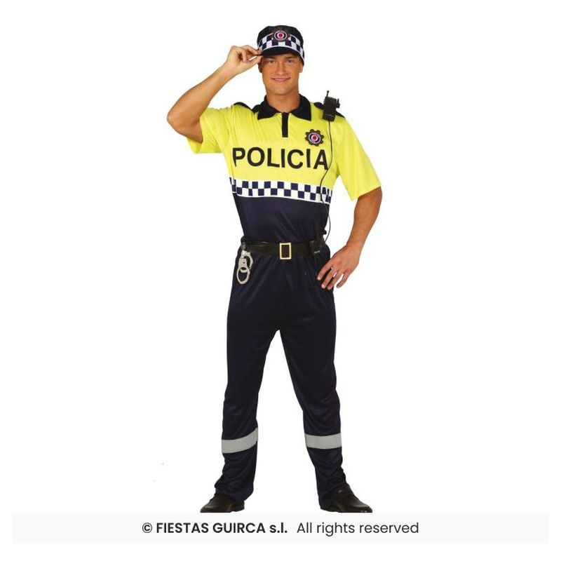Guirca Disfraz de hombre policia Talla-L en color azul y amarillo fluor 88191