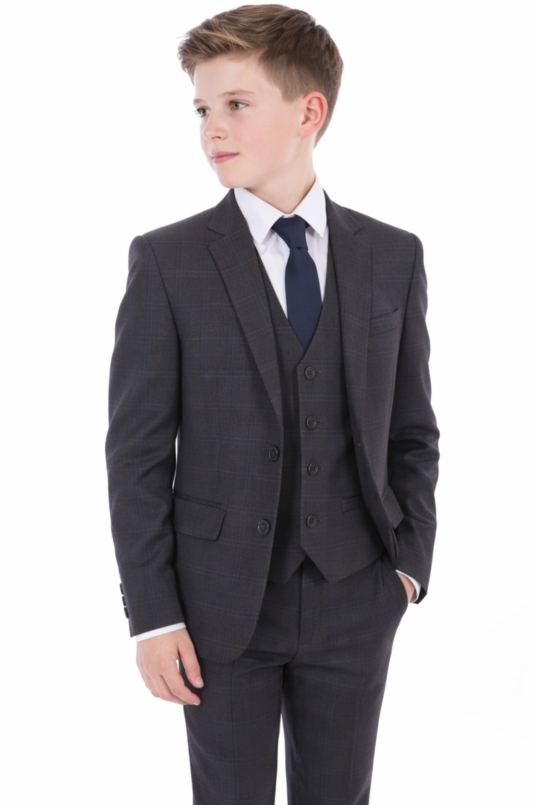 Boys 5 Piece Navy/ Grey Check Romario